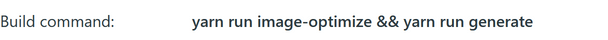 Netlifyのデプロイ設定のBuild commandにyarn run image-optimize && yarn run generateを設定します(自分はパッケージマネージャーにyarnを使っているのでyarnコマンドですが、npmを使っている方はnpmを使ってください)