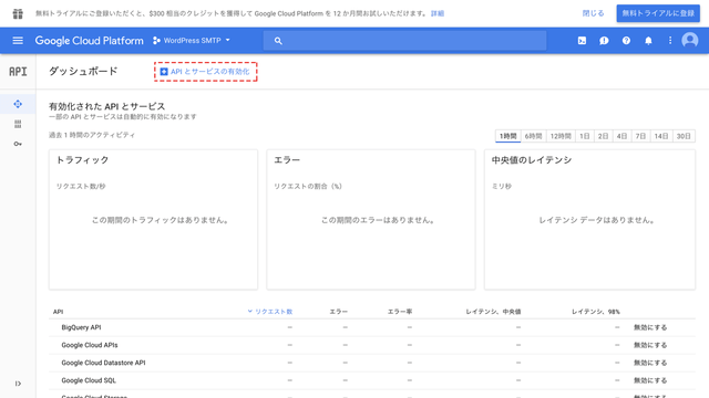 上のほうにある、「APIとサービスの有効化」をクリックします。