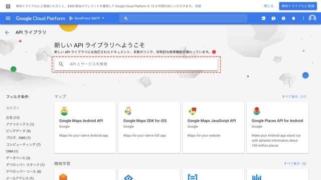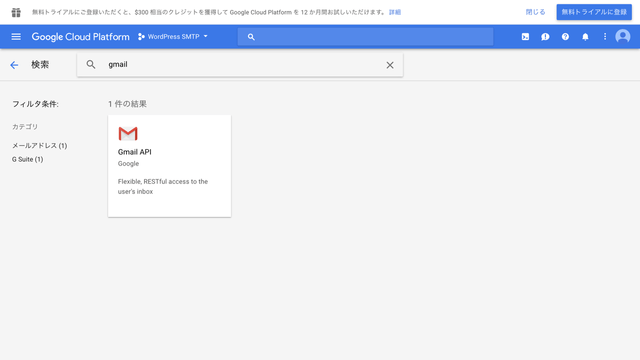 検索窓に「gmail」と入力してGmailのAPIを検索します。